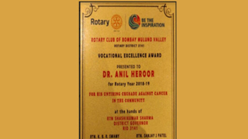 Dr. Anil Heroor received the Vocational Excellence Award From Rotary Club, Mulund!